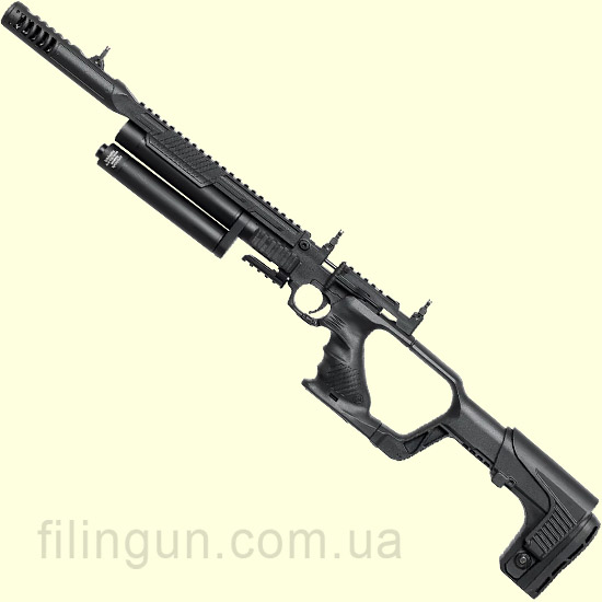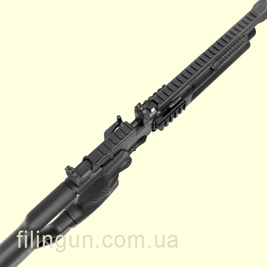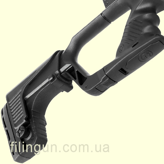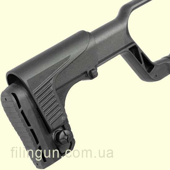 Телескопический приклад с резиновым затыльником и регулируемой щекой позволяет настроить оружие под индивидуальные особенности стрелка, обеспечивая максимальный комфорт при прицеливании.