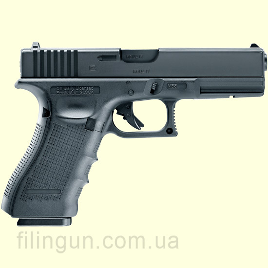 Пистолет пневматический Umarex GLOCK 17 Gen4 – лицензионная версия служебного пистолета для британской армии и многих других армий по всему миру от компании Umarex стреляющий с помощью баллонов CO2 стальными шариками BB калибра 4,5 миллиметра. Модель является подлинной копией с придерживанием оригинальных размеров и маркировок. Также в ней присутствует функция BlowBack - имитация передергивания затвора при каждом выстреле что придает больше реалистичности при стрельбе и взаимозаменяемые backstraps (накладки на рукоятку) которые позволяют настроить рукоятку пистолета под любого пользователя. Начальная скорость составляет 130 метров на секунду, а магазин вмещает 19 шариков. Купить его вы можете у нас в интернет-магазине Filingun.com.ua сделав заказ по телефонам указанных в шапке сайта или же через форму сайта.