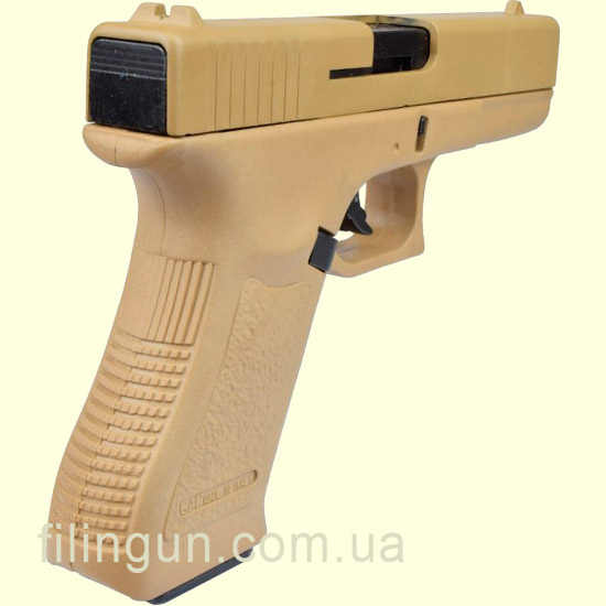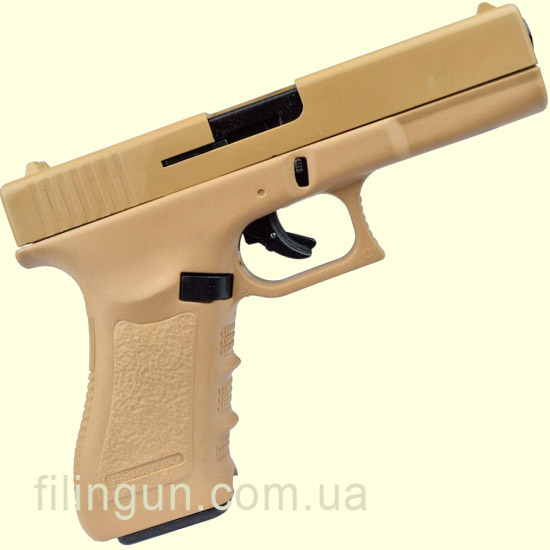 Главное преимущество этой версии — удобная эргономика, которая копирует форму известного боевого пистолета Glock 17. Bruni Gap Desert удобно лежит в руке, имеет простое управление предохранителем и спуском, что понравится как коллекционерам, так и любителям реалистичных реплик.