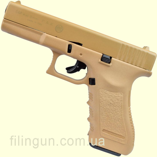 Не случайно Bruni Gap Desert часто сравнивают с легендарным Glock 17. Внешний дизайн модели практически повторяет знаменитый австрийский пистолет, который давно стал стандартом для полиции и армии во многих странах. Glock 17 известен своей надежностью, простотой конструкции и емким магазином на 17 патронов — те же особенности вы найдете и в Bruni Gap Desert.