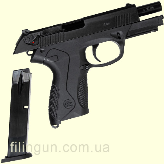 Bruni P-4 выполнен из прочного металлического сплава с элементами полимера, что придает ему не только реалистичный внешний вид, но и приятный вес в руках. Эргономичная рукоятка обеспечивает комфортное удержание, что важно при длительном использовании.