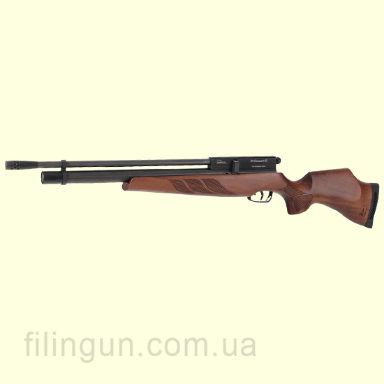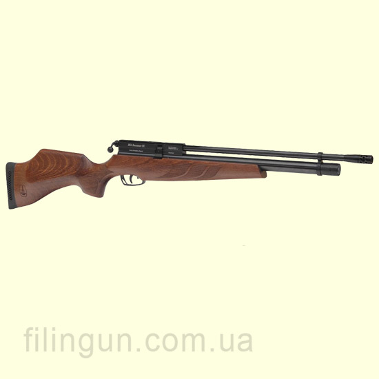 Данная модель винтовки произведена в компании BSA Guns (Birmingham Small Arms Company) Бирмингем Англия. Пневматическая винтовка BSA Buccaneer SE PCP имеет общую длину девятьсот восемьдесят миллиметров. Длина ствола составляет четыреста семьдесят миллиметров и находится он над резервуаром высокого давления. Так как на винтовке отсутствуют прицельные приспособления, то стрельба ведется только с оптическим прицелом. С учётом того что в системе PCP отсутствует отдача на данную модель можно установить любой оптический прицел и не боятся что он у вас разлетится. Сверху на ствольной коробке установлена шина ласточкин хвост на одиннадцать миллиметров для установки крепления оптического прицела. BSA Buccaneer SE PCP выпускается с прикладом с дерева бук. Деревянный приклад хорошо отполирован и приятно ложится в руку. Рабочее давление составляет порядком 232 бар. На дульном срезе винтовки находится дульный компенсатор, который при желании можно скрутить и накрутить в место него саундмодератор (глушитель). Стрильба с глушителем ведется практически без шума. Данная винтовка понравится не только спортсменам, любителям матчевой стрельбы, но и охотникам. Купите и вы сами убедитесь во всех плюсах данного оружия.