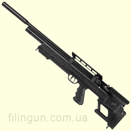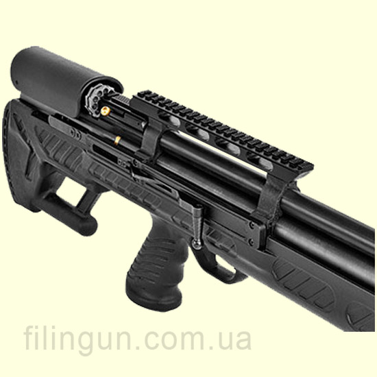 Сегодня мы хотим Вам предложить новую модель пневматической винтовки системы РСР от компании Hatsan - пневматическая винтовка Hatsan Bullboss. Винтовка было разработана в стиле Bullpup. Сменный десяти зарядный барабан ручной загрузки, боковой рычаг биатлонного взвода. Баллон предварительно заряжен. Ствол винтовки нарезной с интегрированным глушителем, который глушит звук выстрела на 50%. Эргономичный пластиковый приклад оснащен резиновой вставкой для лучшего сцепления с предплечьем. Высота щеки приклада легко отрегулировать поворотом колеса. Так же обратим ваше внимание что приклад имеет удобную пистолетную рукоять с выемками под пальцы. Также приклад оборудован планкой Picatinny. Баллон съемный, что дает возможность использовать запасные баллоны. Баллон имеет объем 230 куб. см. Встроенный манометр на торце баллона позволяет контролировать давление. Место для крепления оптического прицела типа ласточкин хвост 11 и 22 мм шириной. Прицельная планка и мушка на винтовке отсутствует. Quattro Trigger - 2-х ступенчатый регулируемый спусковой механизм. Система Anti-double pellet feed предотвращает заряжания больше одной пули. Поставляется в комплекте с ремнём для ношения винтовки на плече.