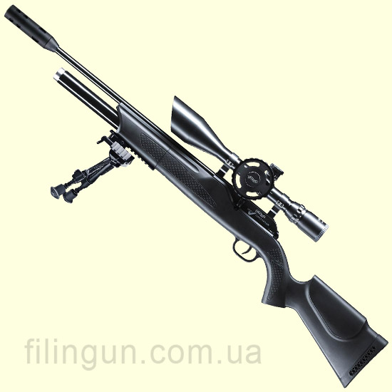 Хотим предложить вашему вниманию пневматические PCP винтовки от немецкой компании Walther. Об одной из них сейчас и пойдет речь - пневматическая винтовка Walther 1250 Dominator FT. Изделие относится к разряду PCP винтовок (с предварительной закачкой). Накачивается она с помощью насоса высокого давления или же с помощью баллона высокого давления до 200 атмосфер. Начальная скорость составляет 380 метров в секунду. Винтовка поставляется с прицельными приспособлениями, оборудованными световолоконной нитью. База под крепление оптического прицела Ласточкин. В комплекте идет оптический прицел Walther 8-32х56FT. Приклад пластмассовый со щекой Монте-Карло. Также на цевье присутствует планка Weaver для установки на неё сошек, которые также идут в комплекте. Винтовка имеет 8 зарядную обойму барабанчикового типа. Так же в комплект поставки идет глушитель, который обеспечивает более комфортную стрельбу. Купить такое изделие вы можете у нас в интернет магазине Filingun.com.ua сделав заказ по телефонам указанных в шапке сайта или же оформив заявку через форму сайта.