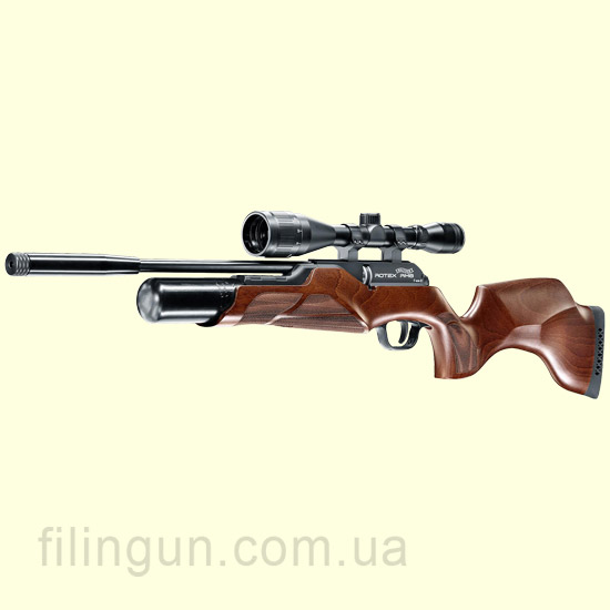 Мы хотим вам предложить изделие от компании Umarex - пневматическая винтовка Walther Rotex RM8. Данная модель относится к винтовкам системы PCP. Мощность винтовки составляет 24 джоуля и начальная скорость до 310 метров на секунду. Стреляет свинцовыми пулями калибра 4,5 миллиметра, которые заряжаются в восьми зарядную обойму. Ствол был сделан Lothar Walther, с 1/2" UNF резьбой для глушителя. Приклад деревянный выполненный компанией Benelli. Так же в винтовке есть возможность регулировки спускового механизма. Прицельных приспособлений на винтовке не предусмотрено, по этому вам придется установить оптический прицел или же коллиматор, на планку ласточкин хвост 11 миллиметров. В низу цевья присутствует манометр там же и гнездо зарядки.