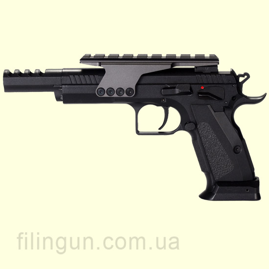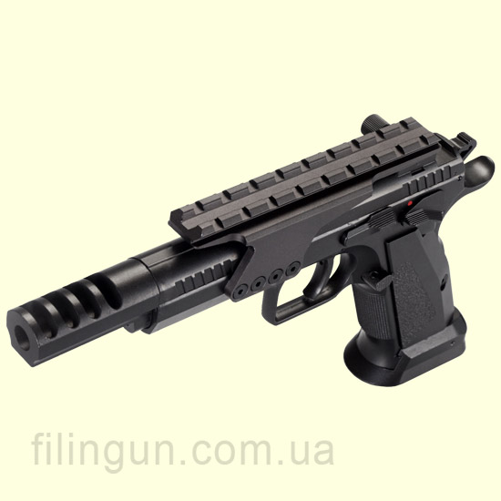Компания KWC занимается выпуском пневматических пистолет известных марок. На украинском рынке данная компания уже давно и успела понравиться многим украинским покупателям. Сейчас мы хотим предложить вашему вниманию пневматический пистолет KWC Tanfoglio Gold Custom KMB89AHN Blowback. Он стреляет с помощью баллонов CO2 стальными шариками BB. Корпус имеет металлический, что придает ему большей реалистичности. Обойма вмещает 19 шариков. Пробивается баллон специальным ключом шестигранником, который идет в комплекте с пистолетом. Это сделано затем что бы не было видно пробивного винта. Модель очень популярна на Украинском рынке. Компания KWC сделала копию этого пистолета до мельчайших мелочей вплоть до имитации перезарядки Blowback. Данная система придется по вкусу всем, так как при стрельбе вы ощущаете, что стреляете как будто с боевого оружия, а это очень большой плюс, как в тренировке, так и просто в развлекательной стрельбе. Также пистолет оборудован планкой Weaver, для установки на неё коллиматорного прицела. Если вам понравилась данная модель, вы можете её купить у нас в интернет-магазине Filingun.com.ua сделав заказ через форму сайта или же позвонив по телефонам указанных в шапке сайта.