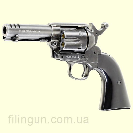 Компания Umarex занимается выпуском пневматических пистолетов и револьверов известных марок. На украинском рынке данная компания уже давно и успела понравиться многим украинским покупателям. Сейчас мы хотим предложить вашему вниманию копию легендарного Colt Single Action Army 45. Пневматический револьвер Colt SAA .45-3.5" Custom Shop Edition стреляет с помощью баллонов CO2 стальными шариками BB. Револьвер имеет металлический корпус, что делает его более реалистичным. Пробивается баллон специальным ключом шестигранником, который вставлен в рукоятку револьвера. Это сделано затем что бы не было видно пробивного винта. Компания Umarex сделала копию этого револьвера до мельчайших мелочей вплоть до имитации перезарядки патронов в каморы барабана. В комплекте идет 6 фальшпатронов, в которые и вставляются стальные шарики BB. Стреляет он только с помощью предварительного взвода курка. Если вам понравилась данная модель, вы можете её купить у нас в интернет-магазине Filingun.com.ua сделав заказ через форму сайта или же позвонив по телефонам указанных в шапке сайта.