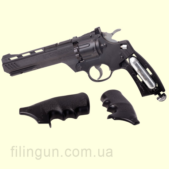 Пневматический револьвер Crosman Vigilante Revolver стреляет с помощью баллонов CO2 свинцовыми пульками 4,5 калибра или же стальными шариками BB. Предназначен Crosman Vigilante Revolver для развлекательной стрельбы. Ствол у револьвера стальной нарезной (шесть дюймов) что обеспечивает точность стрельбы. Повторяющая форму руки удобная рукоять. Стрелять с револьвера можно как самозводом так и с предварительным взводом курка.