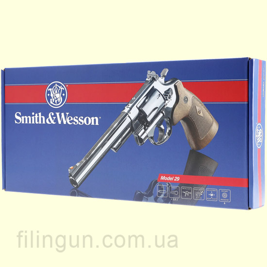 Smith & Wesson M29 использует стандартные 12-граммовые баллоны CO₂ и стреляет 4.5 мм стальными шариками BB. Благодаря системе двойного действия и подвижному барабану, заряжаемому фальшпатронами, ощущается реалистичность обращения с оружием. Барабан вмещает 6 патронов, что подчёркивает верность оригиналу. Спуск мягкий и предсказуемый, а вес модели (более 1 кг) придаёт уверенность в руке.