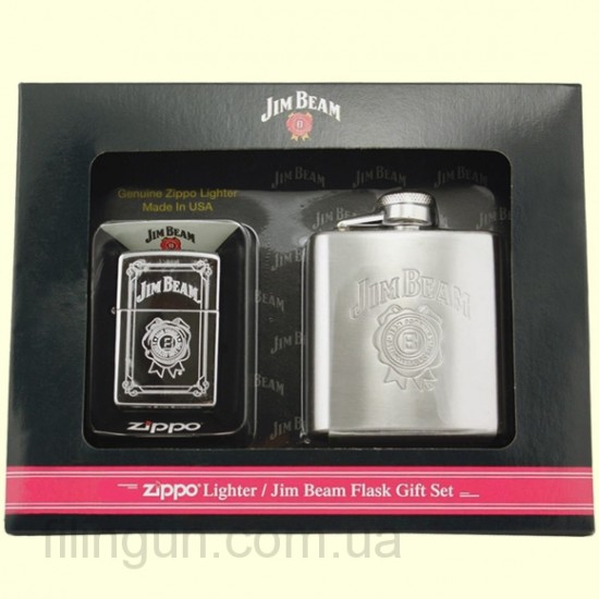 Подарочный набор Zippo 28414 Jim Beam Lighter & Flask Set, состоящий из зажигалки и серебристого цвета фляги, посвящен знаменитой марке виски Jim Beam. Классическая бензиновая зажигалка Zippo имеет глянцевый хромированный корпус с гравировкой и фляга, объемом 3 oz., изготовленная из нержавеющей стали с тисненным логотипом на лицевой стороне упакованы в фирменную подарочную коробочку.
