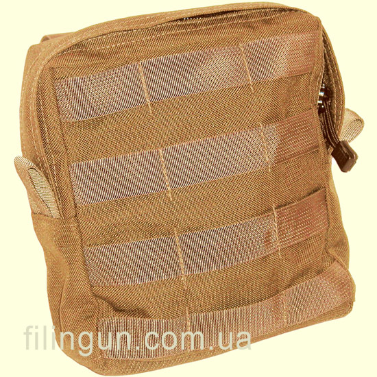 Универсальный большой подсумок BLACKHAWK S.T.R.I.K.E. Large Utility Pouch W/Zipper - Molle Coyote Tan изготовлен из нейлона 500D с фиксацией на систему Molle разгрузочного жилета, тактического брючного пояса или рюкзака. Закрывается на молнию и имеет в нижней части люверсы для отвода воды. С лицевой стороны присутствует система Molle для крепления дополнительного оборудования. Подойдет для переноски различных аксессуаров и комплектующих.