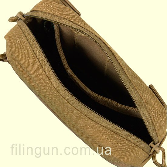Подсумок Condor Compact Utility Pouch Coyote Brown изготовлен из прочной износостойкой ткани из нейлона. Крепится на систему моле Molle с помощью двух ремешков 4 MOD также с помощью них можно повесить его на брючный ремень. С наружной стороны присутствует панель Velcro для крепления ИК-маркеров и различных шевронов размером 5 х 16,5 см и небольшой кармашек на молнии. Внутренние отделение для различных аксессуаров, которые могут вам понадобится. Габариты подсумка составляют 10.1 x 16.5 х 4.4 сантиметров. Двойная застежка на молнии делает пользование подсумком более комфортным.
