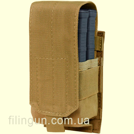 Подсумок Condor Single M14 Mag Pouch Gen II Coyote Brown вмещает в себя 2 магазина на M14 и фиксируется с помощью строп Molle на вашей экипировке. С помощью регулируемой застежки на липучки магазины хорошо фиксируются в подсумке.