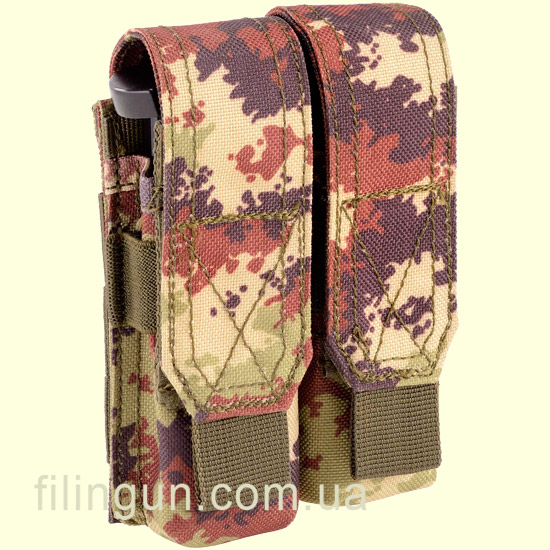 Подсумок Outac Double Pistol Pouch Vegetato Italiano - крепится на стропы Molle. Материал 1000 D Nylon. Предназначен для двух пистолетных магазинов 9 калибра. Имеет откидные крышки, которые защищают от песка и пыли. В нижней части присутствует отверстия для отвода воды.