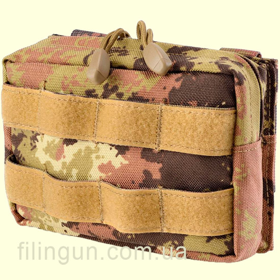 Универсальный подсумок Outac Molle VGP Pouch Vegetato Italiano - крепится на стропы Molle. Материал 1000 D Nylon. На лицевой стороне присутствует модульная система крепления, оборудованная липучками. Легкий доступ к вашим вещам. Закрепить можно как на тактическом ремне, разгрузке или рюкзаке.