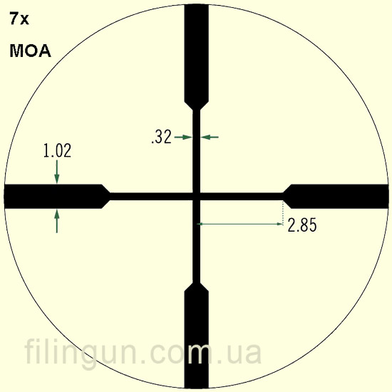 Сетка V-Plex (MOA) обеспечивает ясное и точное прицеливание с удобными метками для быстрой ориентации. Это особенно полезно при стрельбе на переменных дистанциях, когда необходимо быстро адаптироваться к условиям.