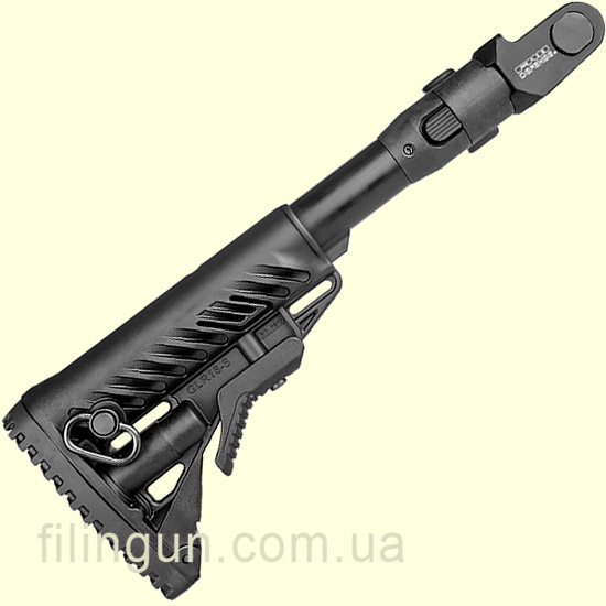 Складной приклад FAB Defense M4-AKMS P M4 Folding Collapsible Buttstock for AKMS (underfolder) предназначен для замены штатного приклада АКМС (складывающимся в низ) под штампованную ствольную коробку и обеспечивает повышенную тактическую универсальность. Буферная трубка изготовлен из анодированного алюминия 6061. Складывается в левую сторону и при этом остается достаточный зазор для доступа к спусковому крючку. Прорезиновый затыльник обеспечивает уменьшение отдачи при стрельбе. Длина регулируется с помощью клавиши и имеет несколько режимов фиксации. Присутствует два отверстия для установки быстросъемной поворотной антабки. Также есть отсек для хранения элементов питания для дополнительного оборудования. Присутствует пружинный фиксатор в сложенном положении, а открывается простым потягивающим движением. Простая установка, не требующая специализированных мастерских.