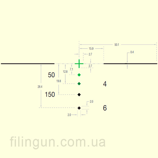 Увеличение в 4 раза, обеспечивающее оптимальное соотношение между увеличением и обзором для работы на средних дистанциях.