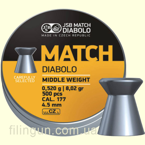 Пули JSB Diabolo Match Middle Weight кал. 4.49, 0.52 g (500 шт) вы можете купить у нас в интернет магазине в Киеве. Принимаем заказы с 9 до 19:00 по контактным телефонам, а также через сайт в любое время. В остальные регионы и города Украины: Черновцы, Белая Церковь, Чернигов, Винница, Черкассы, Горловка, Хмельницкий, Днепр, Херсон, Донецк, Харьков, Житомир, Ужгород, Запорожье, Тернополь, Ивано-Франковск, Сумы, Каменец-Подольский, Славянск, Каменское, Северодонецк, Краматорск, Ровно, Кременчуг, Полтава, Кривой Рог, Одесса, Никополь, Кропивницкий, Николаев, Лисичанск, Мелитополь, Луганск, Мариуполь, Луцк, Львов и другие - отправка производится транспортными службами.