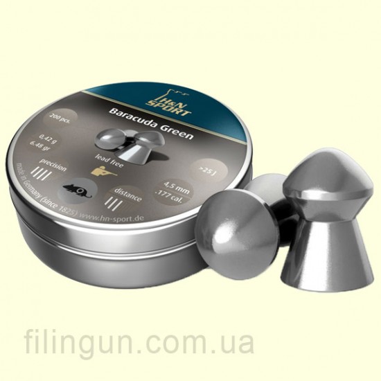 Пули для пневматики Haendler & Natermann Baracuda Green купить в Киеве или в любом городе Украины можно сделав заказ по телефону или на нашем сайте. Привлекательная цена. Доставка транспортными компаниями пули для пневматического оружия Haendler & Natermann Baracuda Green в такие города, как: Харьков, Одесса, Днепропетровск, Донецк, Львов, Симферополь, Житомир, Винница, Ялта и многие другие города Украины.