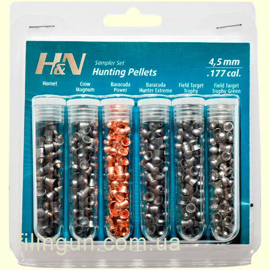 Покупая пневматическую винтовку, мы задаем себе вопрос, а какую пульку нужно мне? Для того чтоб решить этот вопрос компания H&N изготовила пробники из шести разных пулек. В данном наборе вы найдете нужную вам по назначению пульку. Пули для пневматического оружия Haendler & Natermann Hunting Pellets упакованы в цилиндрических колпачках многоразового использования.