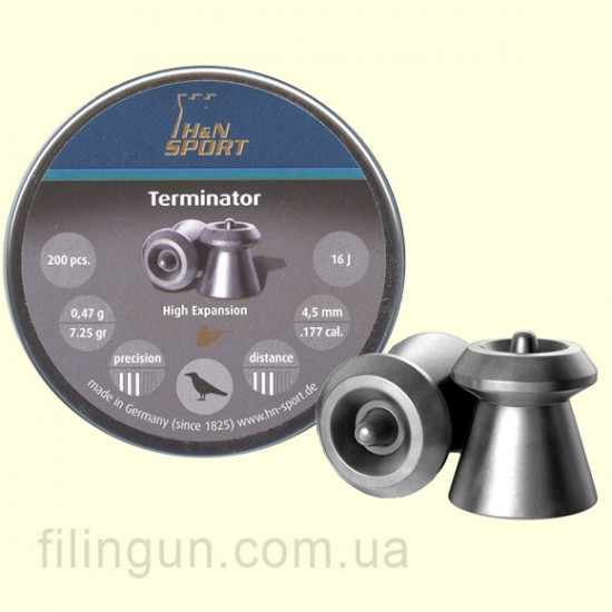 Пули для пневматики H&N Terminator купить в Киеве или в любом городе Украины можно сделав заказ по телефону или на нашем сайте. Привлекательная цена. Доставка транспортными компаниями в такие города, как: Харьков, Одесса, Днепропетровск, Донецк, Львов, Симферополь, Житомир, Винница, Ялта и многие другие города Украины.
