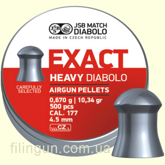 Пули для пневматики JSB Diabolo Exact Heavy кал. 4.52, 0.670 g вы можете купить у нас в интернет магазине в Киеве. Принимаем заказы с 9 до 19:00 по контактным телефонам, а также через сайт в любое время. В остальные регионы и города Украины: Черновцы, Белая Церковь, Чернигов, Винница, Черкассы, Горловка, Хмельницкий, Днепр, Херсон, Донецк, Харьков, Житомир, Ужгород, Запорожье, Тернополь, Ивано-Франковск, Сумы, Каменец-Подольский, Славянск, Каменское, Северодонецк, Краматорск, Ровно, Кременчуг, Полтава, Кривой Рог, Одесса, Никополь, Кропивницкий, Николаев, Лисичанск, Мелитополь, Луганск, Мариуполь, Луцк, Львов и другие - отправка производится транспортными службами.