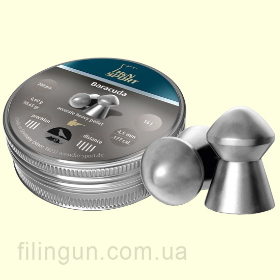 Высокоточные, тяжелые пули для пневматического оружия Haendler & Natermann Baracuda (200 шт.), предназначены, для стрельбы на дальние дистанции. Благодаря аэродинамической форме достигается высокая пробиваемая и проникающая способность. Стрельба этой пулькой показывает высокую кучность. Благодаря специальному сплаву и смазке, достигается минимальное освинцовывание ствола пневматической винтовки. Поверхность пули для пневматического оружия Haendler & Naterman Baracuda гладкая. Купить данный товар вы можете у нас на сайте Filingun.com.ua сделав заказ через форму сайта или же позвонив по телефонам указанных в шапке сайта.