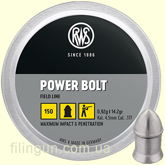 RWS PowerBolt отлично подходят для мощных пневматических винтовок калибра 4.5 мм (.177). Более тяжёлый вес способствует лучшему сохранению энергии на дистанции и уменьшает влияние бокового ветра по сравнению с более лёгкими аналогами. Это особенно важно при стрельбе на средние и дальние дистанции.
