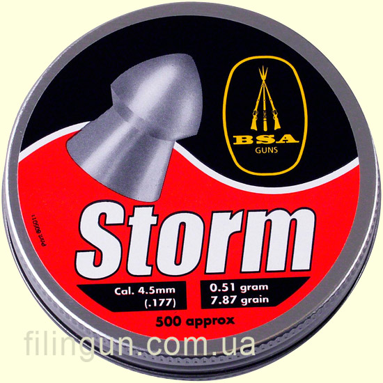 Пули пневматические BSA Storm (500 шт) вы можете купить у нас в интернет магазине в Киеве. Принимаем заказы с 9 до 19:00 по контактным телефонам, а также через сайт в любое время. В остальные регионы и города Украины: Черновцы, Белая Церковь, Чернигов, Винница, Черкассы, Горловка, Хмельницкий, Днепр, Херсон, Донецк, Харьков, Житомир, Ужгород, Запорожье, Тернополь, Ивано-Франковск, Сумы, Каменец-Подольский, Славянск, Каменское, Северодонецк, Краматорск, Ровно, Кременчуг, Полтава, Кривой Рог, Одесса, Никополь, Кропивницкий, Николаев, Лисичанск, Мелитополь, Луганск, Мариуполь, Луцк, Львов и другие - отправка производится транспортными службами.