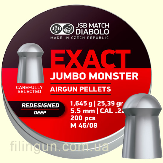 Пули для пневматики JSB Exact Jumbo Monster Redesigned DEEP кал. 5.52, 1.645 g вы можете купить у нас в интернет магазине в Киеве. Принимаем заказы с 9 до 19:00 по контактным телефонам, а также через сайт в любое время. В остальные регионы и города Украины: Черновцы, Белая Церковь, Чернигов, Винница, Черкассы, Горловка, Хмельницкий, Днепр, Херсон, Донецк, Харьков, Житомир, Ужгород, Запорожье, Тернополь, Ивано-Франковск, Сумы, Каменец-Подольский, Славянск, Каменское, Северодонецк, Краматорск, Ровно, Кременчуг, Полтава, Кривой Рог, Одесса, Никополь, Кропивницкий, Николаев, Лисичанск, Мелитополь, Луганск, Мариуполь, Луцк, Львов и другие - отправка производится транспортными службами.