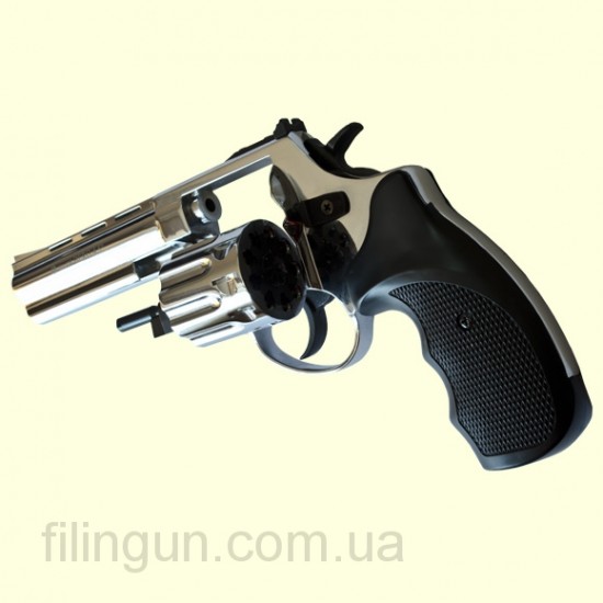 Револьвер под патрон Флобера Ekol Major Berg 4,5" никель один из разновидностей револьверов фирмы Ekol. Многие зададут вопрос, в чем же разница между ними, ответим не в чём. Разница только в названиях так револьверы абсолютно одинаковые. В данном случаи револьвер никелированный. Револьвер имеет стальной ствол и барабан. Камор в барабане девять штук. Калибр револьвера составляет четыре миллиметра и стреляет патронами флобера. Очень экономичная модель, так как другие револьверы стоят уже за 1000 гривен. Револьвер Ekol Major Berg найдет своего покупателя, так же быстро как это сделали предыдущие модели фирмы Ekol. В комплект с револьвером входит пластмассовый кейс, сам револьвер и справка что он не является огнестрельным оружием.