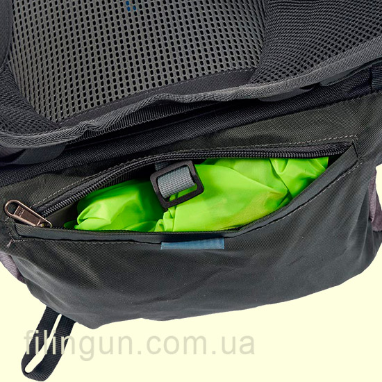 В нем присутствует множество карманов и отсеков для удобной организации и хранения ваших вещей, включая вместительное основное отделение с отсеком для ноутбука, два дополнительных отделение с небольшими карманами для различной мелочевки, два боковых кармана с сетчатыми карманами для бутылки с водой или же термоса. Снизу присутствует карман, в который спрятан водонепроницаемый чехол.