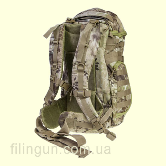 Рюкзак Skif Tac тактический штурмовой 35 литров Kryptek Khaki в основном отделении имеет крупный карман с возможностью утяжки шнурком, также присутствуют два небольших сетчатых кармана по бокам на молнии. Для закрепления вещей внутри есть регулируемые ремни с застежками Fastex. Само отделение имеет объем 35 литров. Для быстрого доступа к вашим вещам, главное отделение оборудовано по средине вертикальной молнией. Клапан главного отделения также застегивается на молнию и имеет поверхность Velcro под нашивки. По бокам и спереди рюкзака присутствуют стропы Molle для крепления снаряжения или же подсумков. По бокам изделия есть два кармана, в одном из них присутствует много маленьких отделений под разную мелочевку а также пластмассовый карабин на шнурке. Также есть отделение для гидратора, что не может радовать, с множеством вариантов вывода питьевой трубки. Плечевые и грудной ремни мягкие с возможностью регулировки имеют застежки Fastex. Спинка рюкзака сетчатая, мягкая и вентилируемая. Съемный поясной ремень имеет застежку Fastex.
