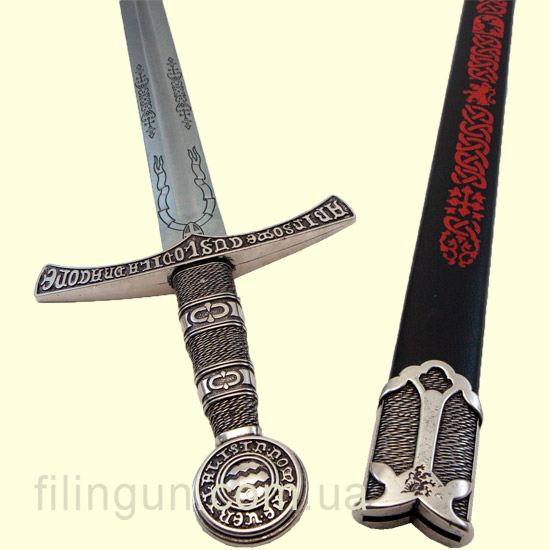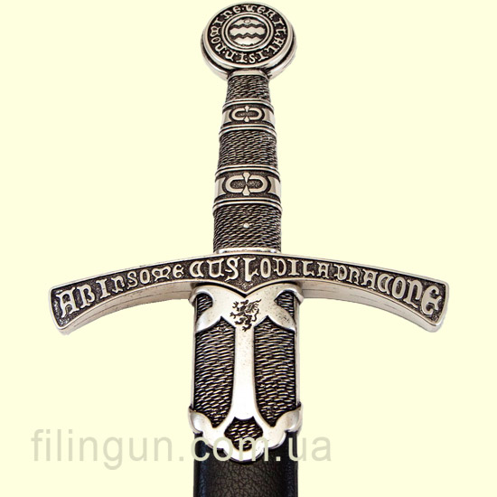 На крестовине и навершии меча имеется надпись на простонародной латыни: «Хранится драгуном, который не спит, во имя истины», добавляющая изделию особый исторический шарм и мистическую атмосферу.