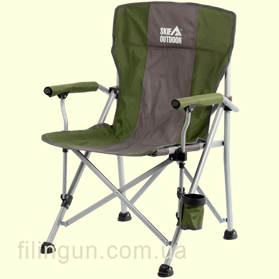 Туристический раскладной стул SKIF Outdoor Council Olive\Gray от компании SKIF Outdoor имеет каркас, изготовленный из стальных труб диаметром 29 миллиметра, подвижные лапки для более комфортной установки на не плотные грунты. Подстаканник, подлокотники, спинка и сидушка пошиты из прочной износостойкой тканью Oxford 600 за которой очень удобно ухаживать, также подлокотники имеют прослойку из пористой резины для большего комфорта. С учётом того, что изделие очень легко складывается и раскладывается и прячется в чехол оно не будет занимать много места при хранении или же транспортировке. Превосходный вариант для любителей рыбалки или же комфортного отдыха на природе, на даче и даже на пляже. Идеальный помощник при отдыхе.
