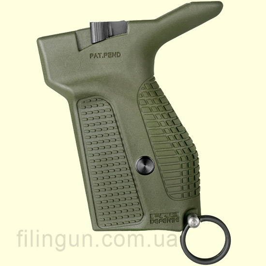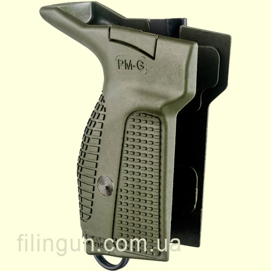Тактическая пистолетная рукоятка FAB Defense PM-G Makarov PM Magazine Release Grip OD Green предназначена для смены штатной рукоятки на пистолетах системы Макарова. Она интересна тем, что в ней присутствует уникальный механизм сброса магазина что позволяет быстрее перезаряжать пистолет. Имеет улучшенную эргономику и удлинённую конструкцию “бобрового хвоста”. Также присутствует кольцо для страховочного шнура.