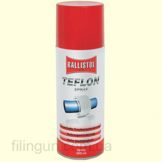 Смазка тефлоновая Ballistol TeflonSpray 200 мл вы можете купить у нас в интернет магазине в Киеве. Принимаем заказы с 9 до 19:00 по контактным телефонам, а также через сайт в любое время. В остальные регионы и города Украины: Черновцы, Белая Церковь, Чернигов, Винница, Черкассы, Горловка, Хмельницкий, Днепр, Херсон, Донецк, Харьков, Житомир, Ужгород, Запорожье, Тернополь, Ивано-Франковск, Сумы, Каменец-Подольский, Славянск, Каменское, Северодонецк, Краматорск, Ровно, Кременчуг, Полтава, Кривой Рог, Одесса, Никополь, Кропивницкий, Николаев, Лисичанск, Мелитополь, Луганск, Мариуполь, Луцк, Львов и другие - отправка производится транспортными службами.