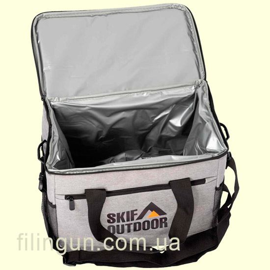 Термосумка Skif Outdoor Chiller M серый - универсальное решение для сохранения температурного режима продуктов питания и напитков, как в повседневной жизни, так и на отдыхе, поездке на природу. Благодаря внутреннему наполнению из PEVA (полиэтиленвинилацетат), сумка сохраняет тепло или холод продолжительное время. Прочный и устойчивый к заломам материал, является гипоаллергенным и простым в уходе. Термосумка застегивается на молнию и снабжена откидной крышкой, что обеспечивает надежность и долговечность конструкции. С внешней стороны, также предусмотрен вместительный карман для мелочей и два кармана-сетки по бокам. Для удобной переноски и транспортировки предусмотрен съемный регулируемый наплечный ремень и ручка на корпусе. Модельный ряд состоит из 3 размеров: S – 10 л, M – 17 л и L – 33 л.