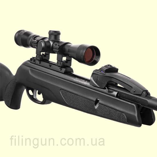 RRR™ (Recoil Reducing Rail) разработана для того, чтобы справляться с нагрузками, создаваемыми на вашем оптическом прицеле от интенсивной отдачи винтовки. Приспособление изготовлено из двух частей алюминия разделенные двойными полимерными стойками для поглощения ударных волн. Данная деталь позволяет погасить отдачу на внутренние компоненты вашего оптического прицела практически на 100%. Также в комплекте с винтовкой идет оптический прицел Gamo 4x32.