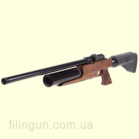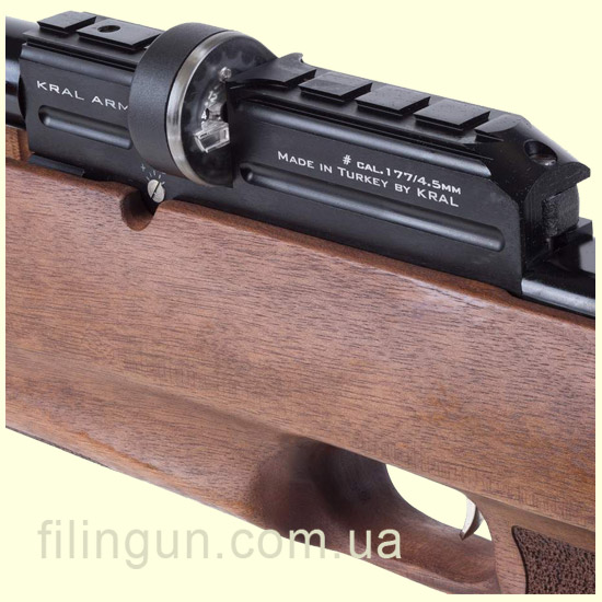 Хотим предложить вашему вниманию пневматические PCP винтовки от турецкой компании Kral. Об одной из них сейчас и пойдет речь - винтовка пневматическая Kral Puncher Bigmax PCP. Изделие относится к разряду PCP винтовок (с предварительной закачкой). Накачивается она с помощью насоса высокого давления или же с помощью баллона высокого давления до 200 атмосфер. Начальная скорость составляет 380 метров в секунду. Винтовка много зарядная с боковым рычагом взведения. Также обратим ваше внимание на том что у винтовки есть возможность регулировки давления. Винтовка поставляется без прицельных приспособлений только под оптический или же коллиматорный прицел. База под крепление Ласточкин хвост или же Weaver. Винтовка имеет 14 зарядную обойму. Ложе выполнено с дерева (Турецкий орех). В винтовке используется два резервуара высокого давления общим объемом 850 см3. Приклад регулируется как по высоте так и по длине, что позволяет стрелку выстовить его под себя. В ствол интегрирован глушитель, для более комфортной стрельбы. Мощность винтовки составляет 36 Дж, с одной заправки можно сделать 150 выстрелов. Начальная скорость пули Baracuda Hunter 0,67 гр составляет 320 м/с. Купить такое изделие вы можете у нас в интернет магазине Filingun.com.ua сделав заказ по телефонам указанных в шапке сайта или же оформив заявку через форму сайта.