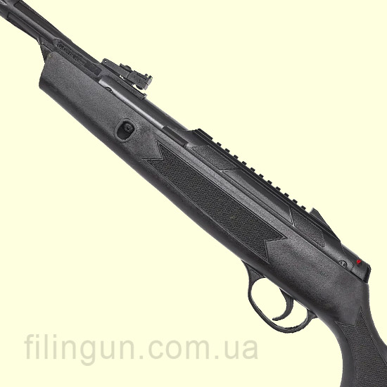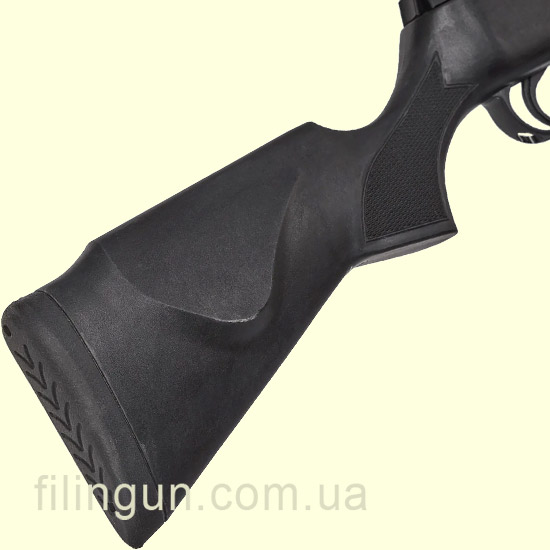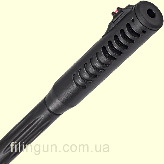 Ствол и конструкция. Стальной ствол с синтетическим кожухом оснащён встроенным Sound Moderator, снижающим уровень шума при выстреле. Приклад изготовлен из прочного пластика с противоскользящими элементами для уверенного хвата.
