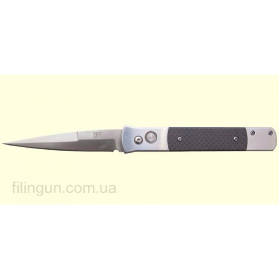 Наш интернет магазин рад предложить вашему вниманию выкидной нож Skif 483A-1. Автоматический нож фронтального выброса благодаря своим техническим характеристикам отлично зарекомендовал себя в качестве как городского, так и походного ножа. Клинок длиной 100 мм и толщиной в 3 мм из нержавеющей стали 440C, зарекомендовавшей себя как материал с высокой прочностью, твердостью (по Роквеллу 56-58HRC) и износостойкостью. Эргономичная рукоять из углеродистого волокна, обеспечивает удобство удержания и комфортную работу при любых условиях эксплуатации. Для удобства ношения и хранения ножа в комплекте поставляется кожаный чехол. Если вас заинтересовала данная модель, вы можете купить карманный нож Skif 483A-1 в нашем интернет магазине Filingun.com.ua, сделав заказ через форму сайта или же позвонив по указанным телефонам.