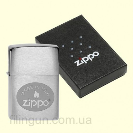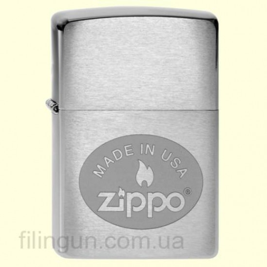 Классическая бензиновая зажигалка Zippo 200.207 Made in USA Brushed Chrome. Металлический корпус имеет матовое хромированное покрытие, благодаря чему на корпусе не остается следов от пальцев. На лицевой стороне гравировка логотипа компании Zippo с надписью: Сделано в США. Зажигалка Zippo упакована в фирменную подарочную коробочку с логотипом Zippo.