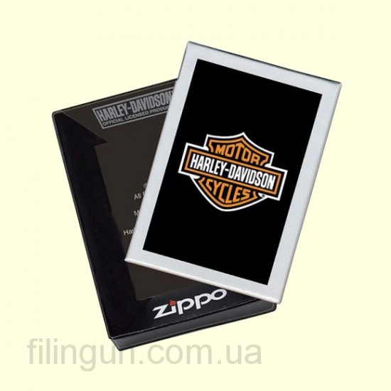 Классическая бензиновая зажигалка Zippo 200HD.H252 Harley Davidson Brushed Chrome. Металлический корпус имеет матовое хромированное покрытие. На лицевой стороне зажигалки изображение логотипа всемирно известной американской марки мотоциклов Harley Davidson. Зажигалка Zippo упакована в фирменную подарочную коробочку с логотипом ТМ Harley Davidson.