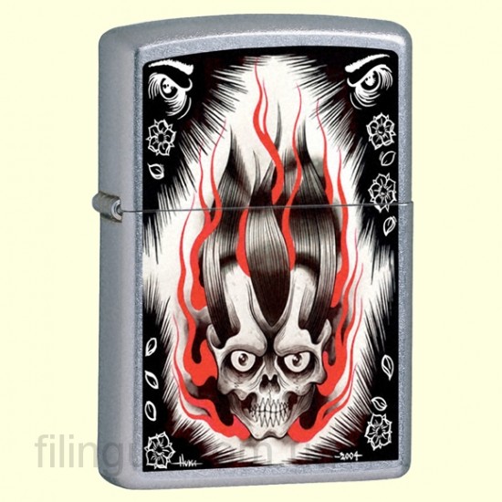 Классическая бензиновая зажигалка Zippo 21098 Soul Crusher Street Chrome. Металлический корпус имеет матовое, одно из самых не прихотливых, хромированное покрытие, на котором не остается следов от пальцев. На лицевой стороне, в характерной манере исполнения тату, на черном фоне в виде пылающего огненного черепа изображен демон Soul Crusher (Крушитель душ). Зажигалка Zippo упакована в фирменную подарочную коробочку с логотипом Zippo.