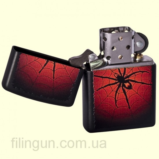 Классическая бензиновая зажигалка Zippo 218.528 Red Web Black Matte. Металлический корпус имеет черное матовое покрытие стойкое к царапинам и стиранию. На лицевой стороне зажигалки изображена паутина с пауком на красном фоне. Зажигалка Zippo упакована в фирменную подарочную коробочку с логотипом Zippo.