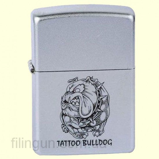 Классическая бензиновая зажигалка Zippo 220.017 Tatto Bulldog Spike Satin Chrome. Металлический корпус имеет матовое, приятное на ощупь, хромированное покрытие обработанное по технологии сатинирования (лощения) - благодаря чему на корпусе не остается следов от пальцев. На лицевой стороне в стиле тату изображение всеми известного бульдога Спайка. Зажигалка Zippo упакована в фирменную подарочную коробочку с логотипом Zippo.