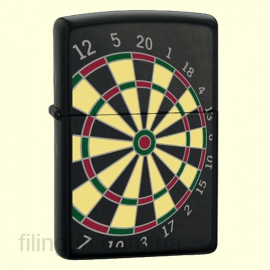 Классическая бензиновая зажигалка Zippo 24332 Dart Board Black Matte. Металлический корпус имеет черное матовое покрытие стойкое к царапинам и стиранию. На лицевой стороне изображение дартса. Зажигалка Zippo упакована в фирменную подарочную коробочку с логотипом Zippo.