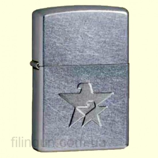 Классическая бензиновая зажигалка Zippo 24365 Star with Eagle Head Stamped Street Chrome. Металлический корпус имеет матовое, одно из самых не прихотливых, хромированное покрытие, на котором не остается следов от пальцев. На лицевой стороне тиснение в виде звезды с головой орла, нанесено методом внутренней штамповки. Зажигалка Zippo упакована в фирменную подарочную коробочку с логотипом Zippo.
